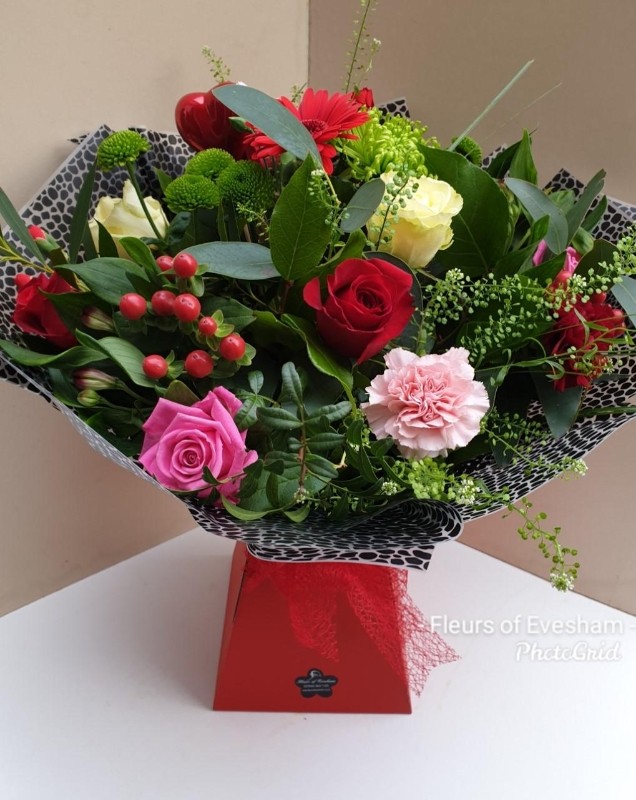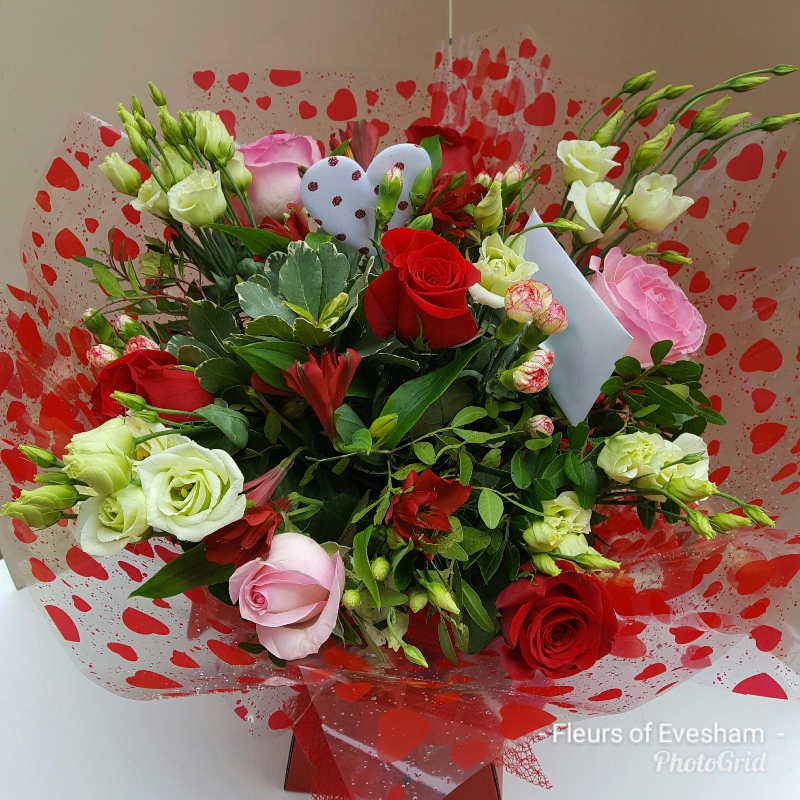 An alternative from the traditional red rose bouquet, this bouquet will contain a minimum of 3 red roses, 3 pink roses and a mix of other flowers which will be left to the florist to incorporate through the design to the specified price point.