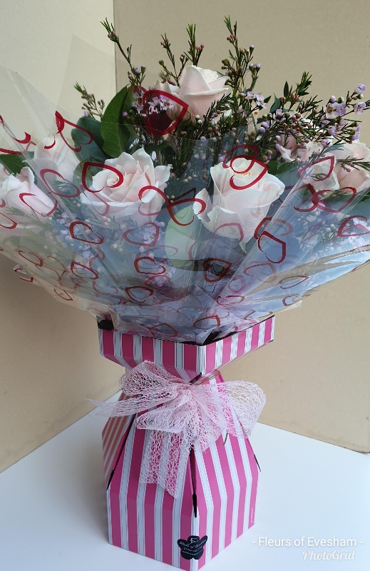 12 Beautiful  Pink Avalanche Roses with waxflower and foliage makes this stunning aqua pack, an alternative to a red rose bouquet.