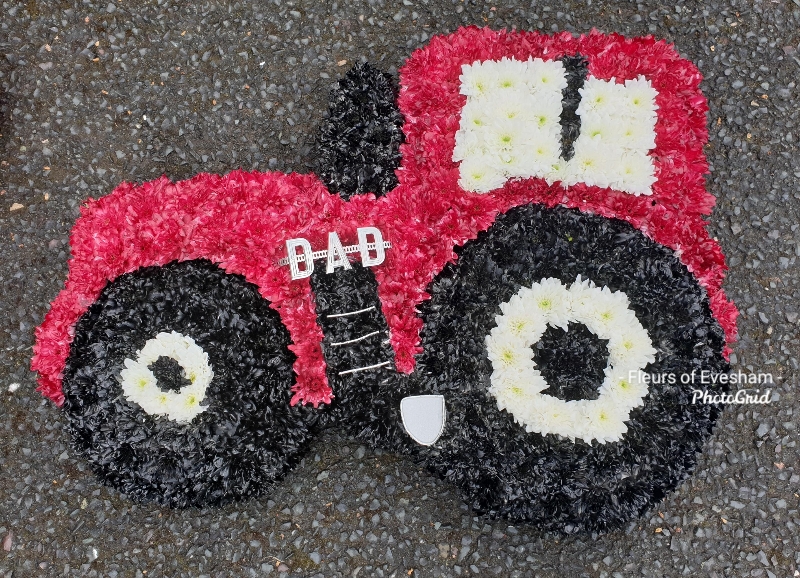 Tractor, based in chrysanthemums, the colour can been changed to green, please specify or give me a call to order.